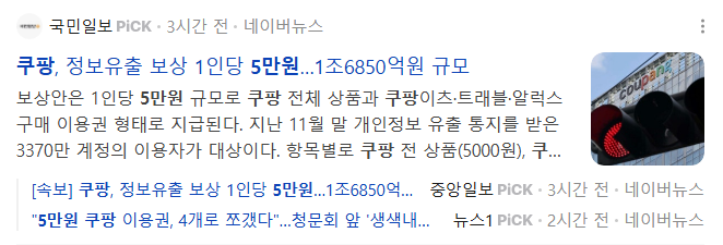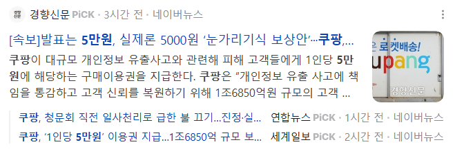 쿠팡 개인정보 유출 보상 5만원 지급 논란 사용은 1만원뿐?